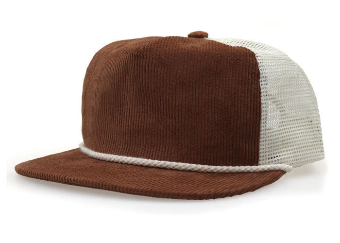 Emblem 5600c, a vintage soft structured grandpa trucker hat with a super soft 11 wale corduroy fabric.